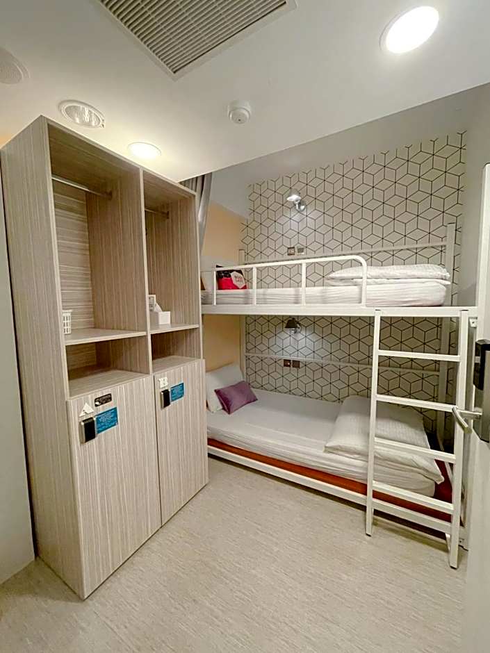 Located on the mixed floor, this bunk bed room features air conditioning and shared bathroom.
